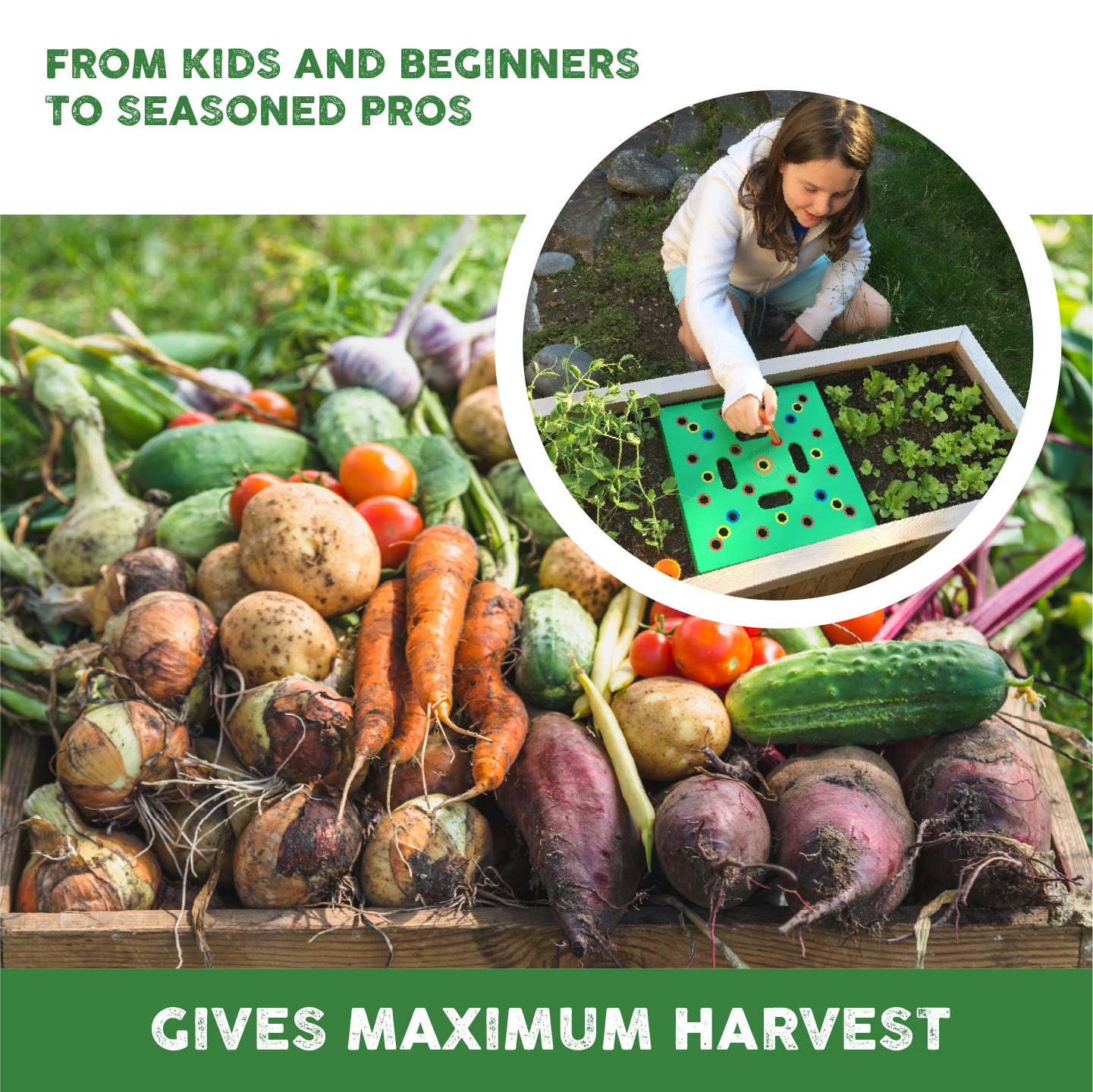 - HELPING YOU GARDEN BETTER: Get ready for a huge harvest from your vegetable garden! Inspired by the Square Foot Gardening method, our seed-spacing template is fun for all ages and experience levels.